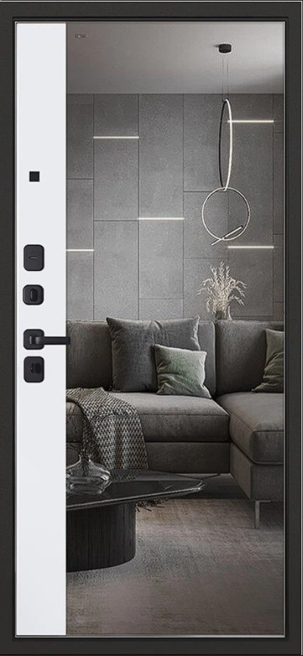 Надежная входная Дверь Scandi с зеркалом премиум класса по цене 45 215 руб. Большая толщина стали защитит от проникновения в ваш дом, квартиру или коттедж. Используется очень качественная фурнитура: замки, цилиндры, ручки, защелки. Покрытие и отделка двери изготовлено под внимательным контролем производителя. Дверь имеет долгий срок службы и гарантию.
